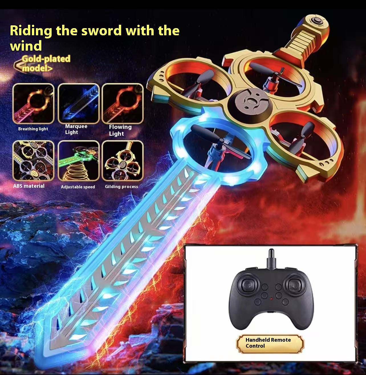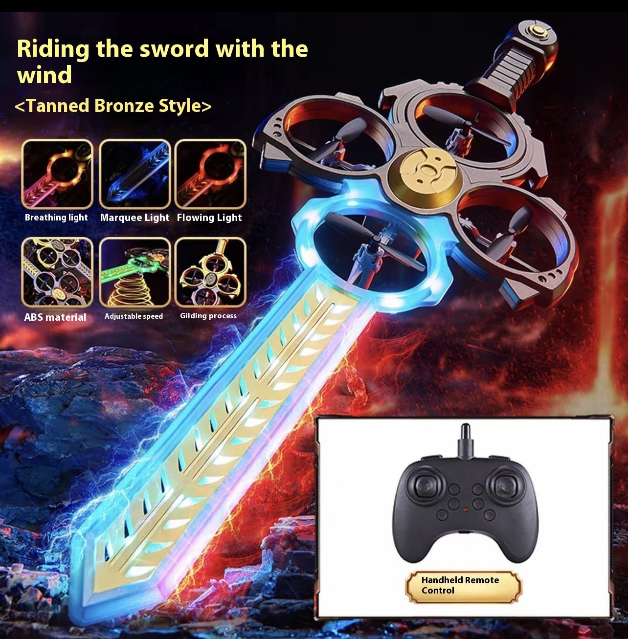 Color: double control-bronze flying sword, double control-gold plated flying sword, single control-bronze flying sword, single control-gold plated flying sword